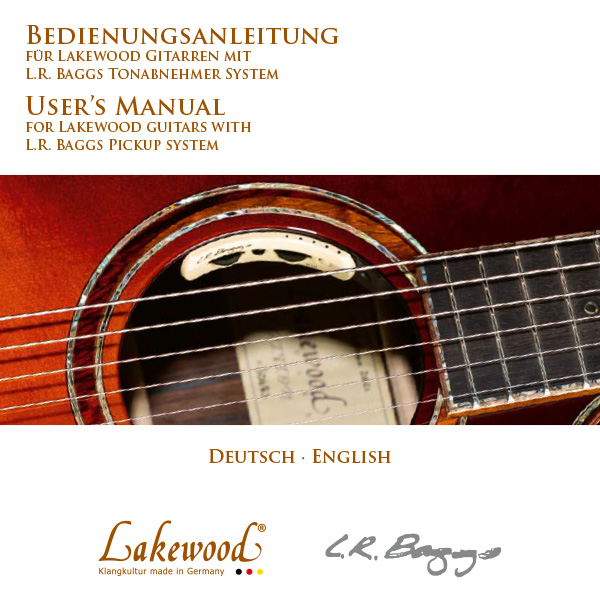 Comprehensive user manual for all L.R. Baggs pickup systems that we install in our Lakewood guitars. It covers the following systems: - Anthem System - Anthem SL & Anthem SL Classical System - Anthem Stagepro System - Session VTC System It also includes information about the external battery compartment.